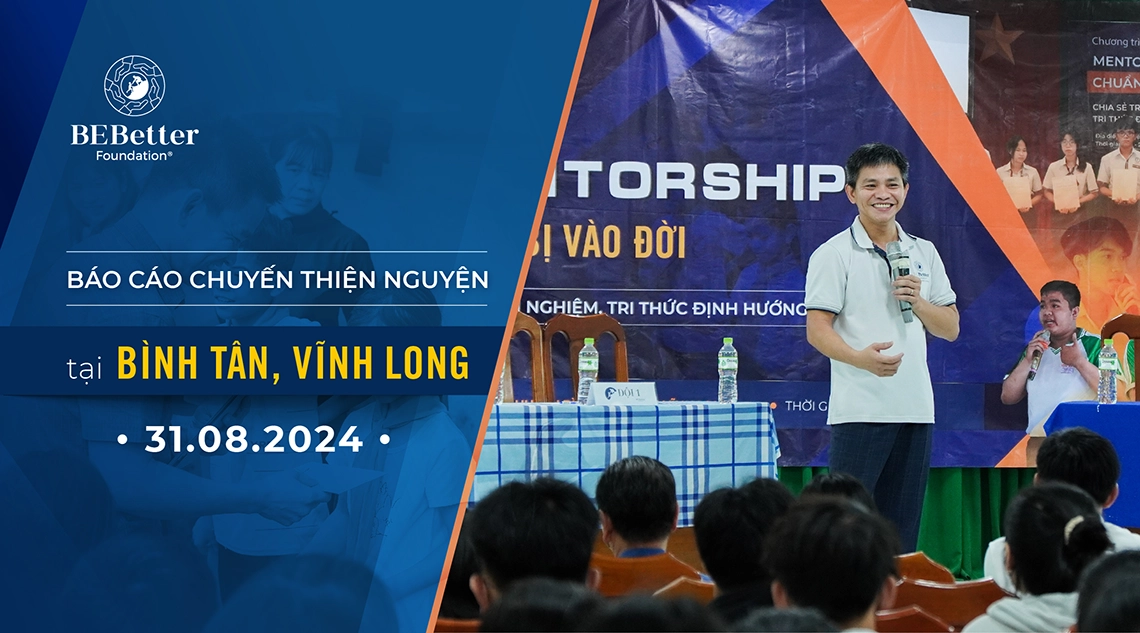 Trong hai ngày 31/08-01/09/2024 vừa qua, Quỹ Be Better đã hoàn thành tốt đẹp chặng hành trình thiện nguyện tại hai điểm trường: trường THCS&THPT Đông Thành, xã Đông Thạnh, thị xã Bình Minh & trường THPT Tân Quới, Trung tâm GDNN-GDTX huyện Bình Tân, tỉnh Vĩnh Long.
