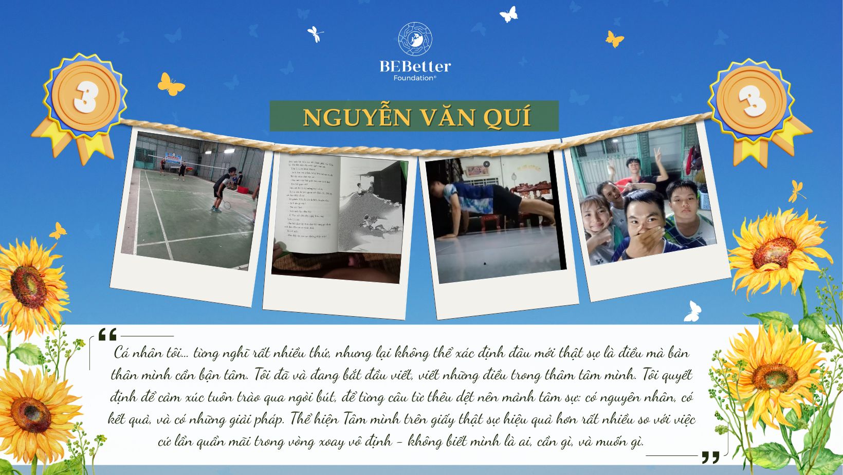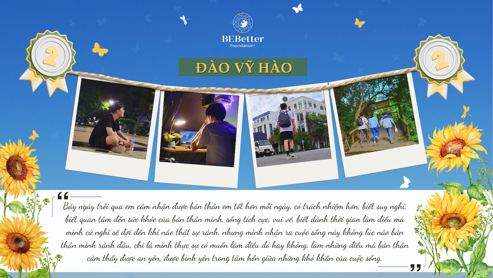 Ba bạn thí sinh tham gia cuộc thi thực sự đã chiến thắng, toả sáng và trở thành nguồn cảm hứng lớn cho nhiều người khác. Ban Tổ chức cũng đã nhận được rất nhiều điều quý giá từ các em. Be Better rất trân trọng và biết ơn những nỗ lực của các em trong suốt hành trình 7 ngày cùng nhau rèn luyện và học tập này.