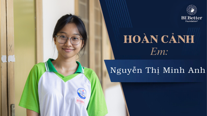 Minh Anh lớn lên trong tình yêu thương trọn vẹn của ba mẹ, dù ba mẹ em nay đều đã ngoài lục tuần. Ba em, ở cái tuổi lẽ ra phải được an dưỡng, lại đang phải chiến đấu với căn bệnh ung thư hiểm nghèo. Cả ba và mẹ Minh Anh dù đã có tuổi và mang nhiều căn bệnh vẫn đang cố gắng làm ruộng để kiếm thêm thu nhập và lo cho em đi học. Minh Anh có một người anh trai, hiện đang là một bác sĩ tại Bệnh viện Trưng Vương TP. Hồ Chí Minh, cũng đã từng vượt qua hoàn cảnh khó khăn để theo đuổi việc học. Mọi gánh nặng về kinh tế trong gia đình đều do anh trai Minh Anh gánh vác. Tuy nhiên, với tình cảnh gia đình hiện tại, việc học lên đại học của Minh Anh đang gặp nhiều trở ngại nếu không có sự hỗ trợ thêm.
