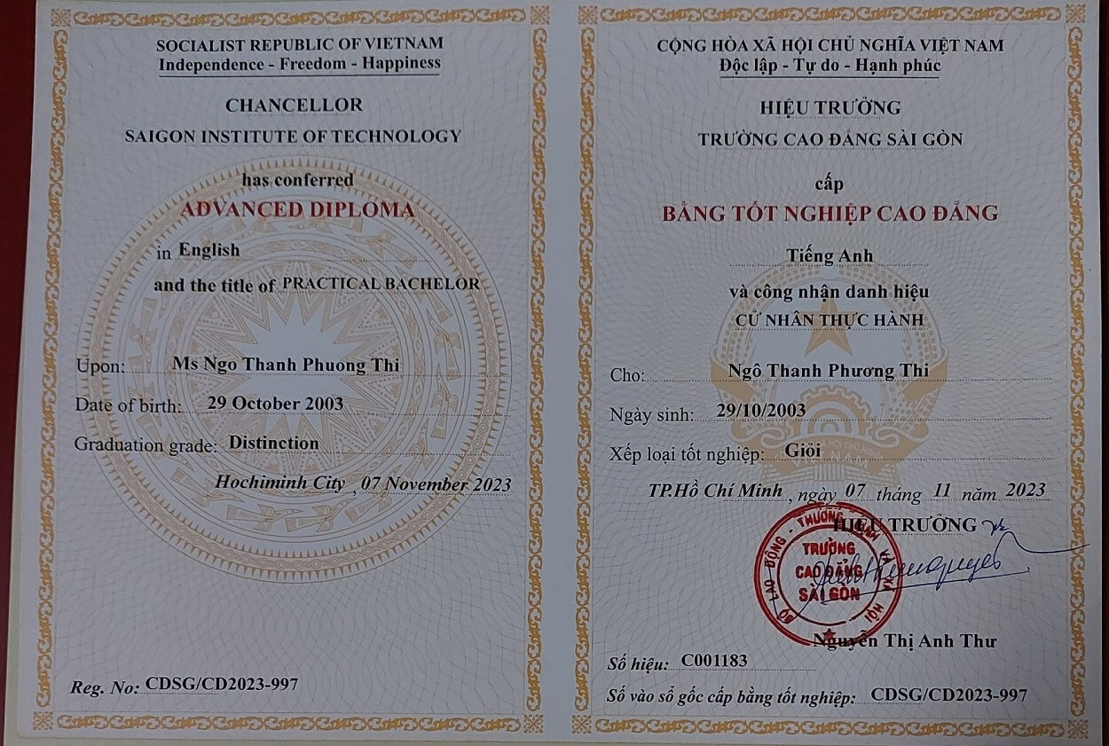 • Hiện đang học tại trường Cao đẳng Sài Gòn.
